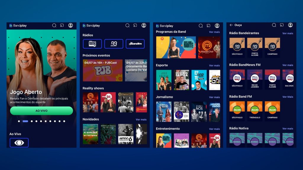 Por fim, temos a BandPlay, a plataforma de streaming da Band que transmite alguns jogos do Brasileirão, Série B e campeonatos estaduais. O aplicativo não só pode ser baixado no celular, como também está disponível para alguns computadores e Smart TVs! Descubra como fazer o download deste aplicativo e dos demais que listamos aqui.