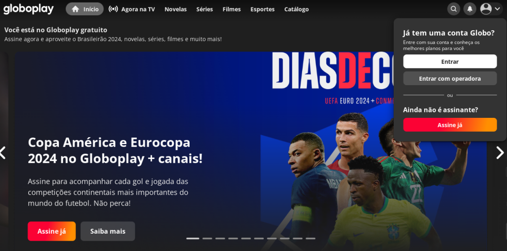 - A partir do navegador no PC, basta entrar no site oficial, escolher o conteúdo e começar a assistir.